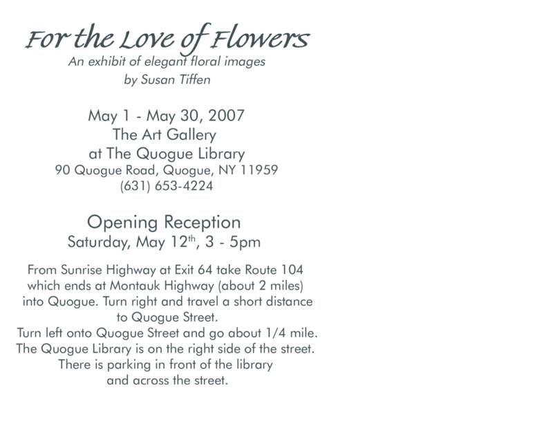 A solo exhibit of my flowers, May 1st through June 3rd, 2007.
