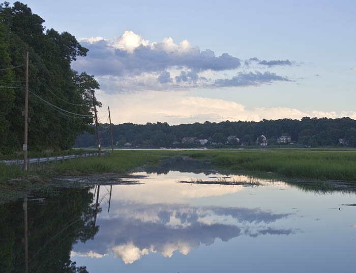 The cottage with the red roof to the left dates back to the 19th century. According to local legend the name, Gamecock Cottage, comes from a weathervane visible in early 20th century photos.